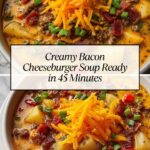 A rich and hearty Bacon Cheeseburger Soup featuring ground beef, crispy bacon, tender potatoes, and creamy cheddar cheese in a savory broth with a hint of spice. This comforting soup is perfect for any occasion where you crave the flavors of a classic cheeseburger in a warm, satisfying bowl.