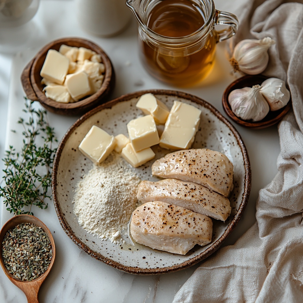 Getting the ingredients right is key to nailing this Creamy Garlic Chicken Recipe. Each item is simple but plays an essential role in developing the rich flavors, creamy texture, and inviting aroma that make this dish so memorable.