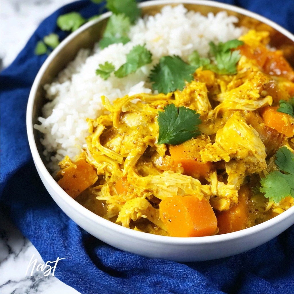 This Crockpot Curry Chicken recipe offers a flavorful, easy-to-make meal perfect for busy days. Tender chicken breasts simmered slowly with aromatic curry powder, turmeric, coriander, and creamy coconut milk create a rich and comforting curry. Sweet potatoes and onions add sweetness and texture, while cooking low and slow in the Crock-Pot results in juicy, shreddable chicken infused with spices. Serve this hearty curry over basmati rice for a delicious, satisfying dish.