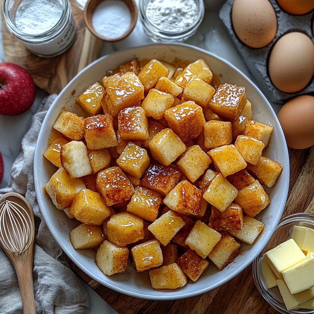 Start by peeling, coring, and dicing those lovely Honeycrisp apples—it’s worth the little effort because the pieces get tender yet retain some bite when cooked. Melt butter in a medium skillet over medium heat, then stir in brown sugar and spices before adding the apple chunks. Cook gently for about 5 to 7 minutes until the apples soften and become caramelized. Set the mixture aside to cool while you prepare the cake batter.
