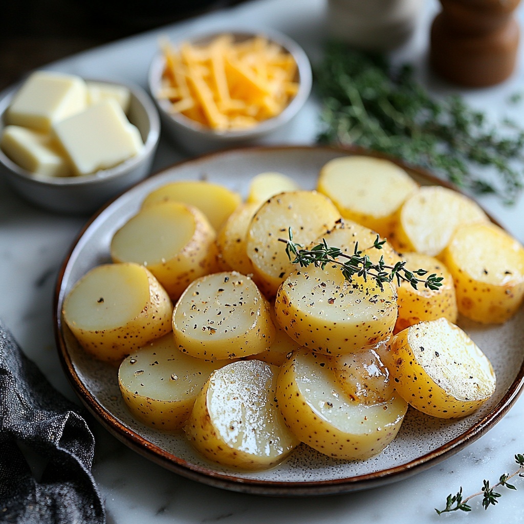 1. Prepare Potatoes: Peel (if desired) and thinly slice the starchy potatoes evenly to ensure uniform cooking. Set aside in cold water to prevent browning.