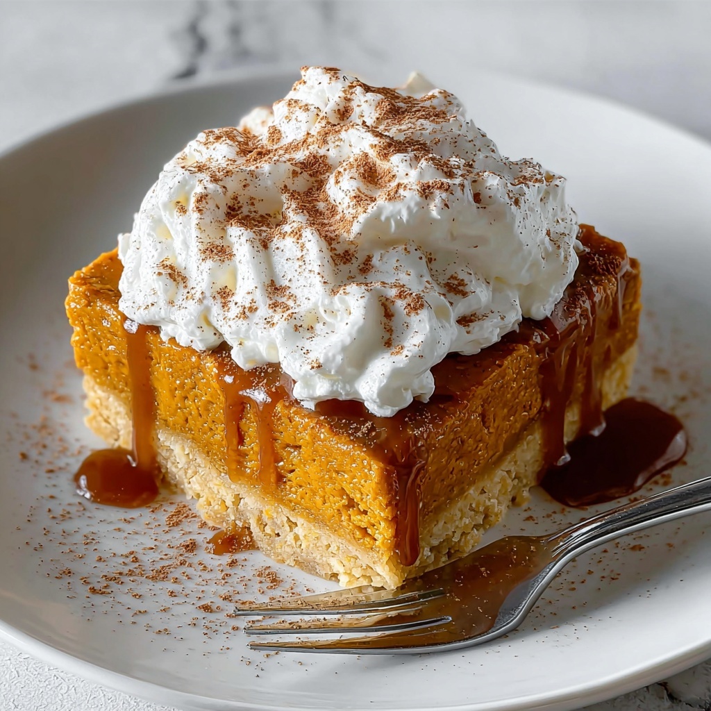 - Assemble and Serve: Spread the whipped cream evenly over the chilled cake. Optionally, drizzle caramel sauce on top for extra decadence. Slice and serve chilled for a deliciously moist pumpkin dessert.